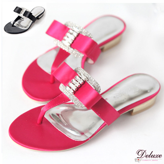 [品牌心得推薦]【☆Deluxe☆】閃耀夏日-清涼微露Y字緞面水晶+水鑽夾腳涼鞋(★黑-桃)尺寸好穿嗎-