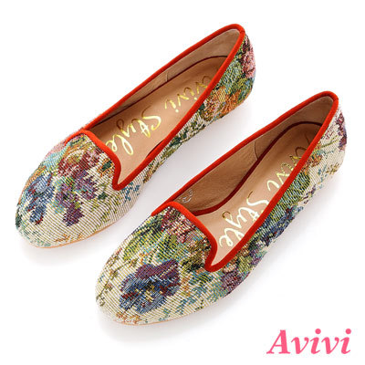 Avivi 秋氛品味 ☆ 復古刺繡圖案樂福鞋 (米)