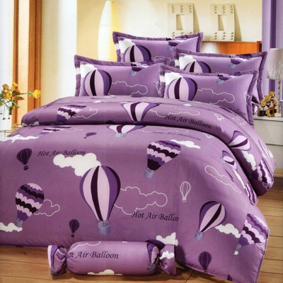 熱騰騰的【艾莉絲-貝倫】愛戀熱氣球(6.0呎x6.2呎)四件式雙人加大(100%純棉)鋪棉涼被床包組(紫色)價格評比