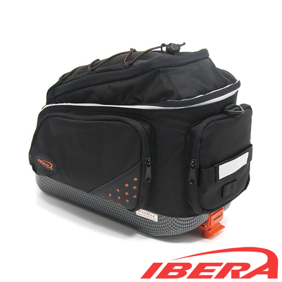 | 產品特色 ? PakRak快拆系統設計-搭配IBERA專用後貨架,拆卸容易,好攜帶 ? 獨特雙拉鍊開口設計,讓您取物時更方便 ? 超大空間加上大型開口設計,適合長途旅行裝載物品使用 ? 加強襯墊設計,讓您物品的保護性再加分 ? 1680D強韌尼龍布材質,耐磨、防污、抗雨淋 ? 布料經過頂級防撥水處理,防潑水效果極佳 ? 置物袋上方附彈性束帶,可將大型物品固定於上方,攜帶更便利 ? 碳纖美感硬式底殼,置物袋不易變形,保護易碎物品 ? 環狀反光飾條設計,給您全方位的保護 ? 可手提提把皆有反光飾條設計 ? 吊片,可以加掛尾燈,安全再升級 ? 附贈舒適肩背帶,手提、肩背都輕鬆方便