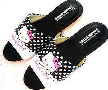(e鞋院)HELLO KITTY(圓點點) 室內皮拖鞋(親子拖) ~黑~