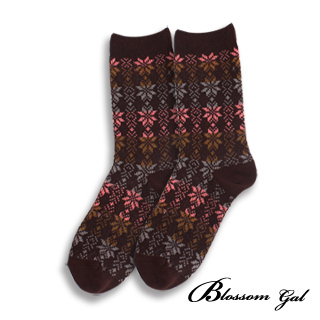 【Blossom Gal】復古雙色雪花針織造型短襪(咖)