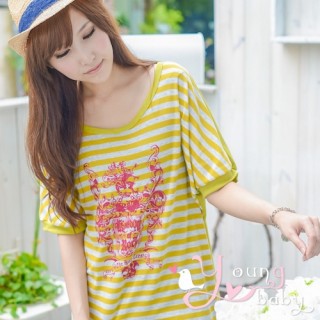 【YOUNGBABY中大碼】臺製 皇家銀粉圖騰條紋寬T(共6色)商品訊息描述: