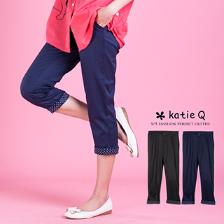 【-katie Q】水玉點點反摺七分褲-F(黑-藍)