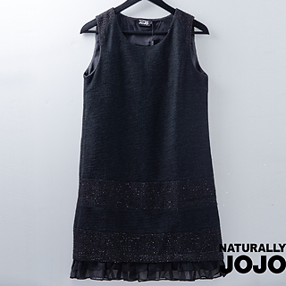 【NATURALLY JOJO】華麗名媛U領層次拼接毛尼洋裝(黑色)那裡買