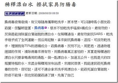 [囧囧新聞獎] 稀釋漂白水 擦拭家具防腸毒