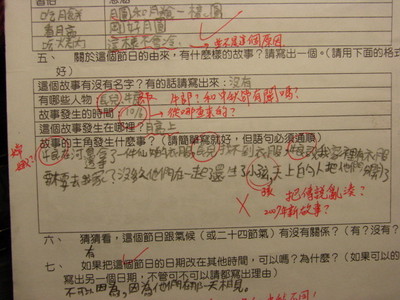 如果學生回答「不可以,因為長兒......嫦娥就是在這天奔月的。」......我該說他太天真嗎?有些事我們明明不相信,但卻又把這些東西當成真實的理由?(就好像重陽節的故事愈渲染愈多,或者包公從一個清官演變成一堆武功好手的大頭目......這些背後都充滿人民的期待)