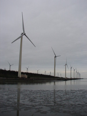 臺灣也是有不少風力發電廠的,這是在台中清水鎮,高美海濱的風力發電廠。