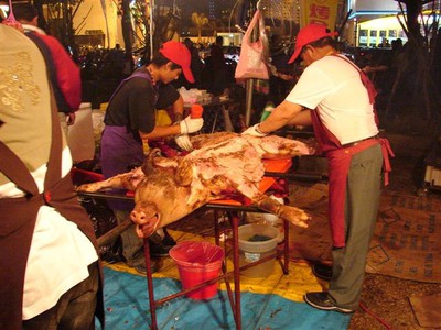 後來她在那裡待了很久,一直看著這隻被串在火上的山豬,周遭的遊客來來往往,山豬上面的肉也被一塊一塊的割下來,變成一道道香噴噴的佳餚(是真的很香)。