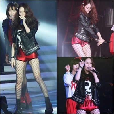 最近網路社群裡流傳著一張照片,內容為12月22日 f(x) 參加中國的表演,照片中 Krystal 穿著皮衣配上鮮紅的短褲,再加上不常見到的網襪,展現出性感的一面,令人不驚讚嘆 Krystal 修長的美腿及姣好的身材。