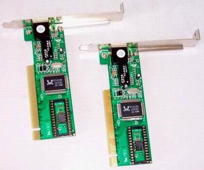 我取出“珍藏”的一對市場上隨處可見的8139D10M/100M自適應網卡,市場價格25元一個,北京某廠的產品,做工還算精細,總成本50元人民幣。