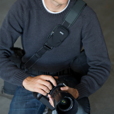 The Keep It Up shoulder strap單肩背帶為模組化配件產品帶來額外幫助, 比起攝影專用背心更方便使用。單肩背帶不需移動帶子就可輕鬆兩間互背, 減低常時間設備過重壓在肩膀上的疲憊。