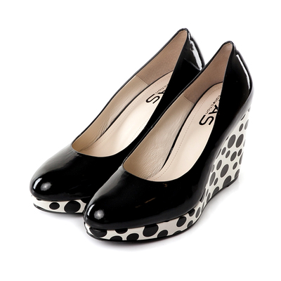 TAS 普普風潮 鏡面質感黑白圓點厚底高跟鞋-經典黑