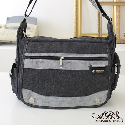 ABS愛貝斯 - 磁釦翻蓋水洗帆布橫式側背包06-001 - 黑灰
