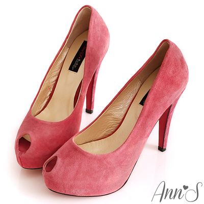 Ann'S優雅睡美人.高質感麂皮紅底魚口跟鞋*桃