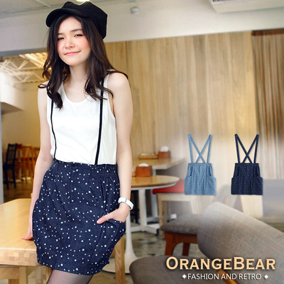 OrangeBear-星星仿牛仔布吊帶短裙‧共二色