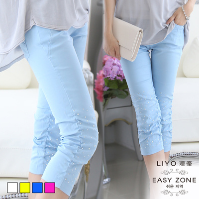 長褲 韓系釘珠鑲鑽直筒褲(共4色)LIYO理優