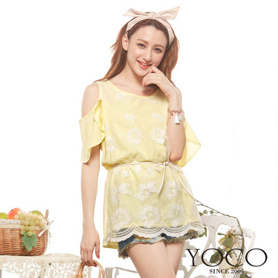 東京著衣-YOCO 繡花蕾絲挖肩荷葉袖上衣(共三色)商品網址: https://tw.partner.buy.yahoo.com:443/gd/buy?mcode=MV92TVFFTzVWMmdNZW...