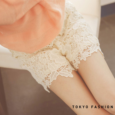 東京著衣 蕾絲繡花鬆緊短褲(共二色)