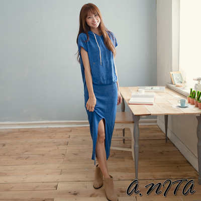 【A.NITA】韓國暢銷款‧前開叉運動休閒套裝裙(藍色)