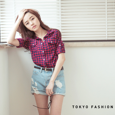 東京著衣 韓版方格紋口袋襯衫-S.M(共二色)