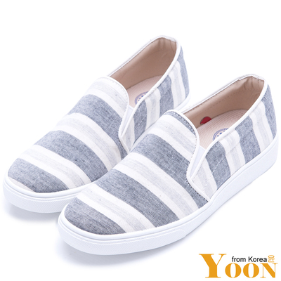 潤YOON正韓專賣-韓國製仿舊無印感條紋帆布懶人便鞋(灰杏)