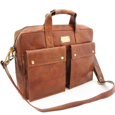 CALTAN - 雙口袋波浪紋手提側背兩用包 - 波浪紋淺咖