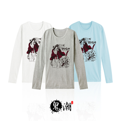 鬼潮*復古質感和服名旦長袖T恤