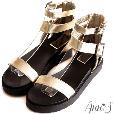 Ann’S個性單品.寬帶銀釦厚底涼鞋*金