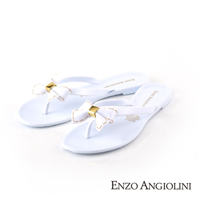 Enzo Angiolini 俏麗風蝴蝶結夾腳果凍平底涼拖鞋-氣質白