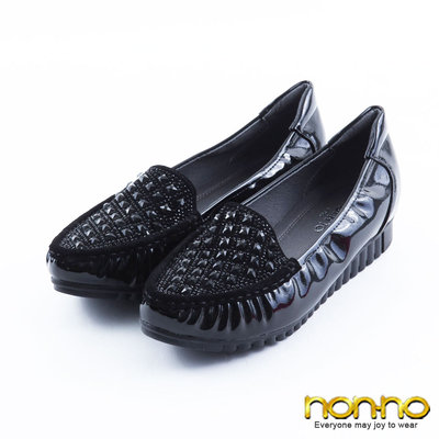 nonno 都會風采 水鑽漆皮樂福休閒鞋-黑