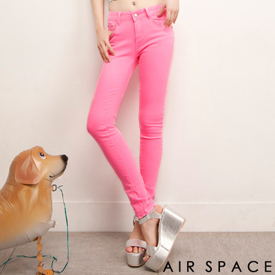 【AIR SPACE】中高腰緊身彈性彩色窄管長褲(俏甜桃)