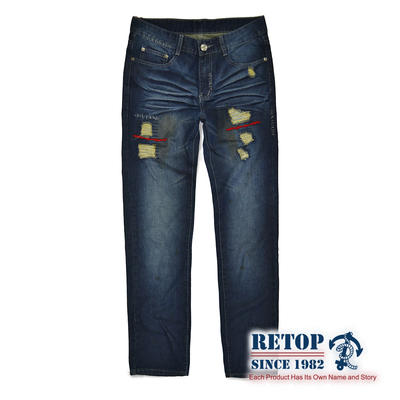 RETOP-重磅窄管破壞丹寧褲(藍)