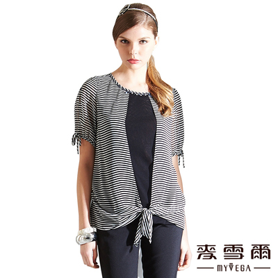 • 麥雪爾 黑白條紋寶石雪紡短上衣