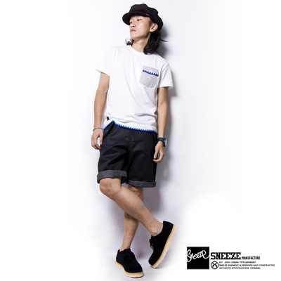 Sneeze - Combine Stripe Shorts 直條拼接短褲 延續本季一貫的拼接工法
