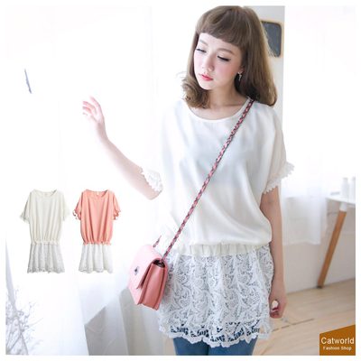 Catworld 蕾絲滿滿荷葉滾邊袖洋裝共二色