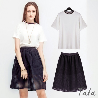 素面棉T+格子半身裙套裝 TATA商品網址: