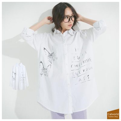 我覺得印刷感狗頭字母襯衫白色Catworld不僅穿起來合身舒適,自己感覺也變很有時尚的FU!!(哈哈哈!!!!)