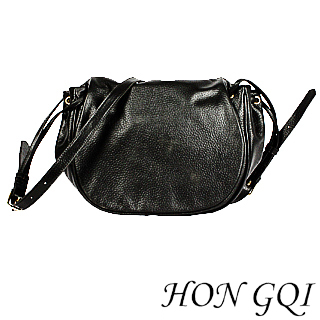 【HON GQI鴻奇皮件】荔枝紋全牛皮休閒肩側背馬鞍包款(黑)