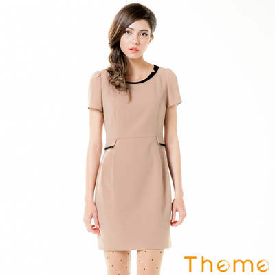 Theme 領口撞色短袖洋裝(淺駱駝)