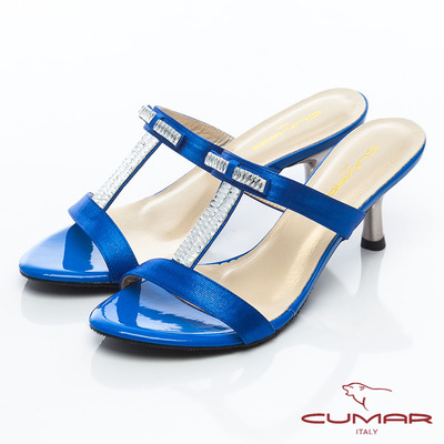 CUMAR簡約時尚 工字閃亮細帶跟鞋-藍色