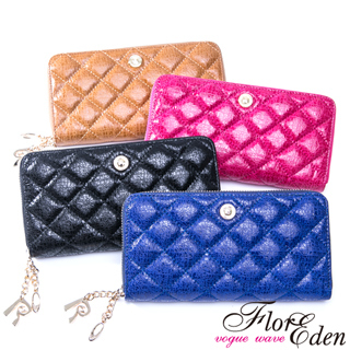 【DF Flor Eden】大理石菱格紋真皮款單拉鍊長夾(共4色)