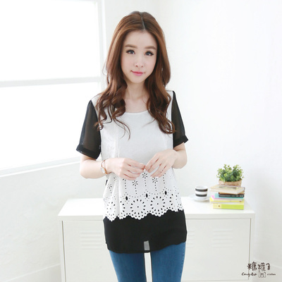 • 精緻壓紋呼應底部燒花拼接後開口雪紡若隱若現增加亮點,搭配窄管褲散發自信丰采和簡雅大方的名媛姿態喔~