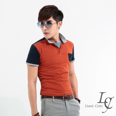 L AME CHIC 韓國商務休閒素面雙色拼接小口袋短袖POLO衫