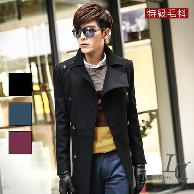 L'AME CHIC 韓國英倫專櫃金屬釦大翻領加厚保暖毛料大衣附暗袋