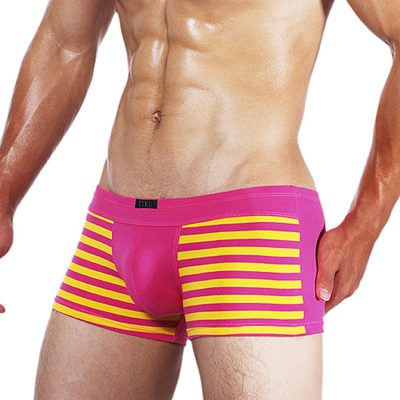 TIKU 梯酷 ~ 條紋派對 棉質透氣超彈 平口男內褲 -粉黃