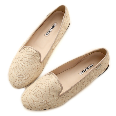 ANGELA正韓~首爾空運韓國製繡花布面樂福休閒平底鞋(米)