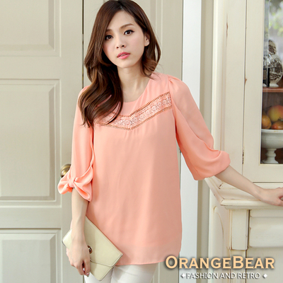 OB嚴選-鏤空花紋蝴蝶結袖上衣‧共二色