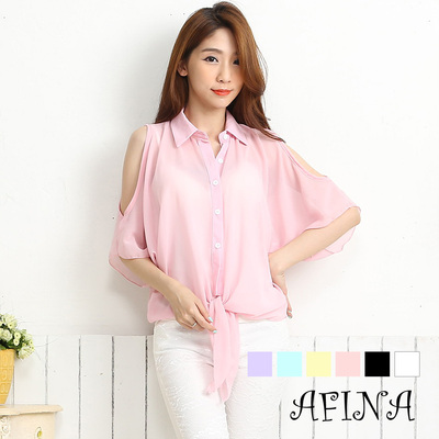 雪紡 綁帶蝙蝠袖上衣-共6色 AFINA