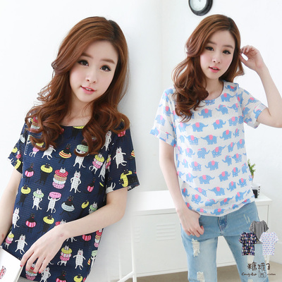 糖罐子-貓咪大象直條雪紡衫(共三色)